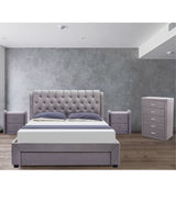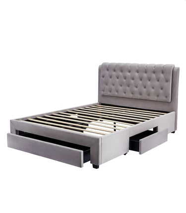 Quinny Elegant Euro Style Button Tufted Velvet Bed Frame with Storage/Drawers EH1053