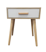 Elec Home Furniture offers this stunning White and Oak Bedside Table with a Scandinavian inspired design. This Scandinavian Bedside Table is a functional and versatile table that can be used in any room to provide additional surface space.