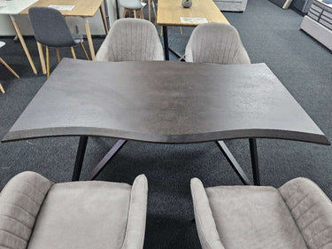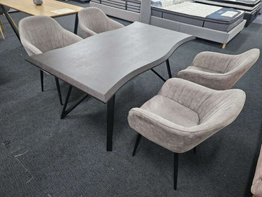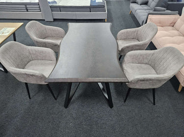 Dining Chairs: *Comfy grey velvet padded seat *Solid black metal legs *Protectors to avoid wood floor scratches