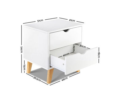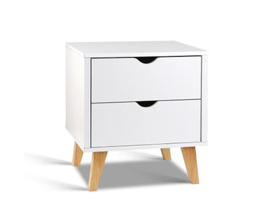 Scandinavian White Bedside Table with Two Drawer