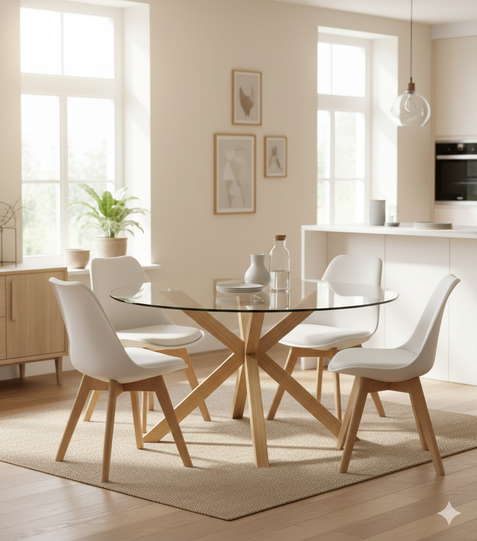 Round Tempered Glass Dining Table with 4 or 6 Chairs