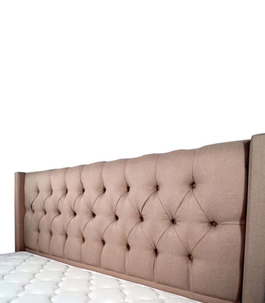 • Button tufted high headboard with wings.