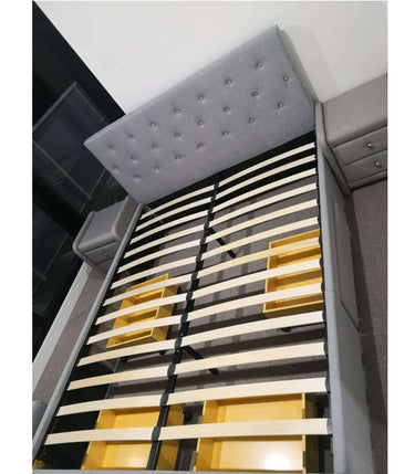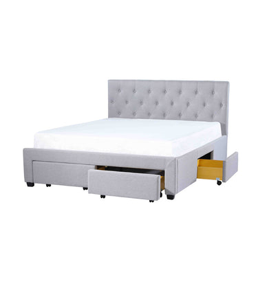Grey Linen Fabric Bed Frame with Four Drawers EH1202