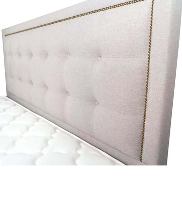 - Trendy buttoned high headboard, decorated by a square round of rivets.