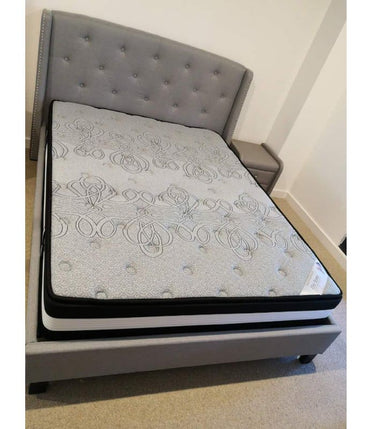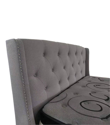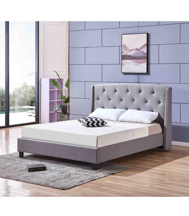Modern Grey Winged Headboard Linen Fabric Bed Frame (Mattress Not Included) EH1072