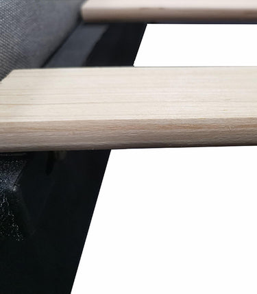 Breathable Linen Fabric. Elegant designed lines decorated with rivets Solid wooden feet. Solid wood flat slats provides strong and durable support for your mattress.