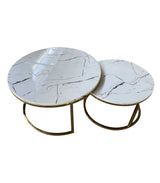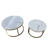 2-Piece Moorstone Marble Stone & Gold Nestle Coffee Table Set/Side Table