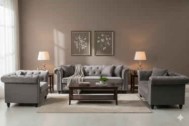 Dover Dark Grey/Light Grey Velvet Fabric 1 Seater/2 Seater/3 Seater Luxury Chesterfield Sofa Set / Sofa Suite