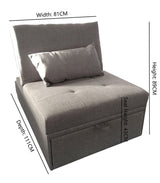 Experience the perfect blend of style, comfort, and functionality with our Grey Fabric 1 Seater Pull Out Sofa Bed. Designed for contemporary Australian homes, this versatile piece of furniture effortlessly transforms from a stylish armchair to a comfortable single bed, making it an ideal choice for small living spaces, apartments, or guest rooms.