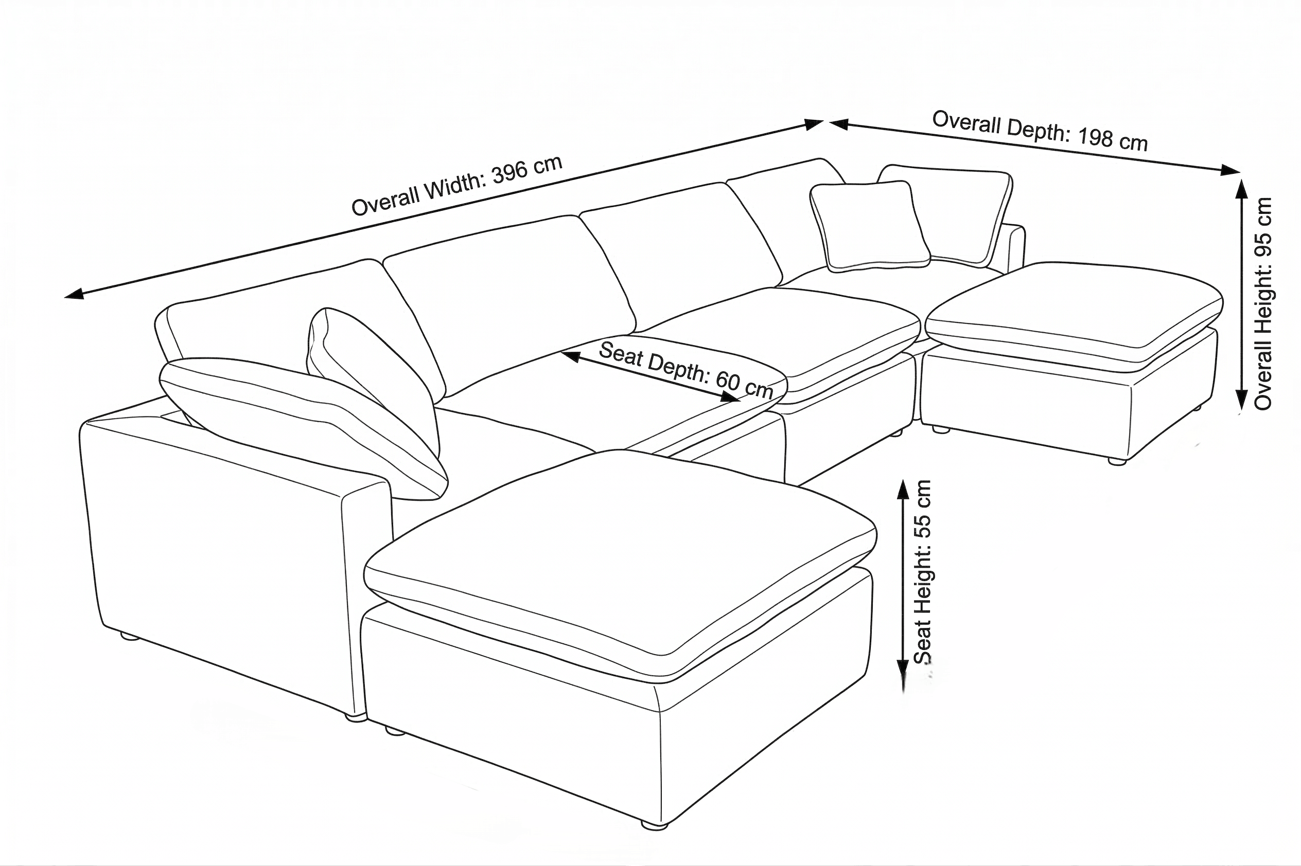 Cloud Modular 6 Seater U-Shape Couch (including 2 Ottomans)